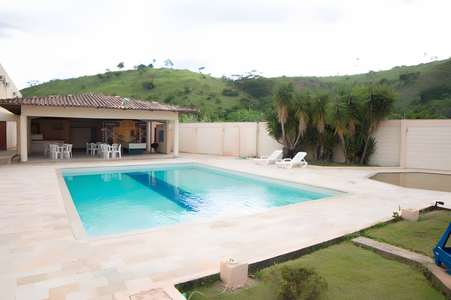 Piscina e espaço de convivência para relaxar.